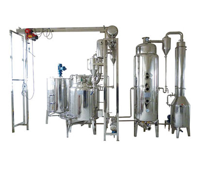 多功能提取浓缩机组设计了定量流量仪,使药物与溶剂的比例更精准,由于在提取进程中,热的溶剂被强制由上而下连续高速穿透药物,使物料充分接触起了动态提取与补充溶剂的作用,同时缩短提取时间。